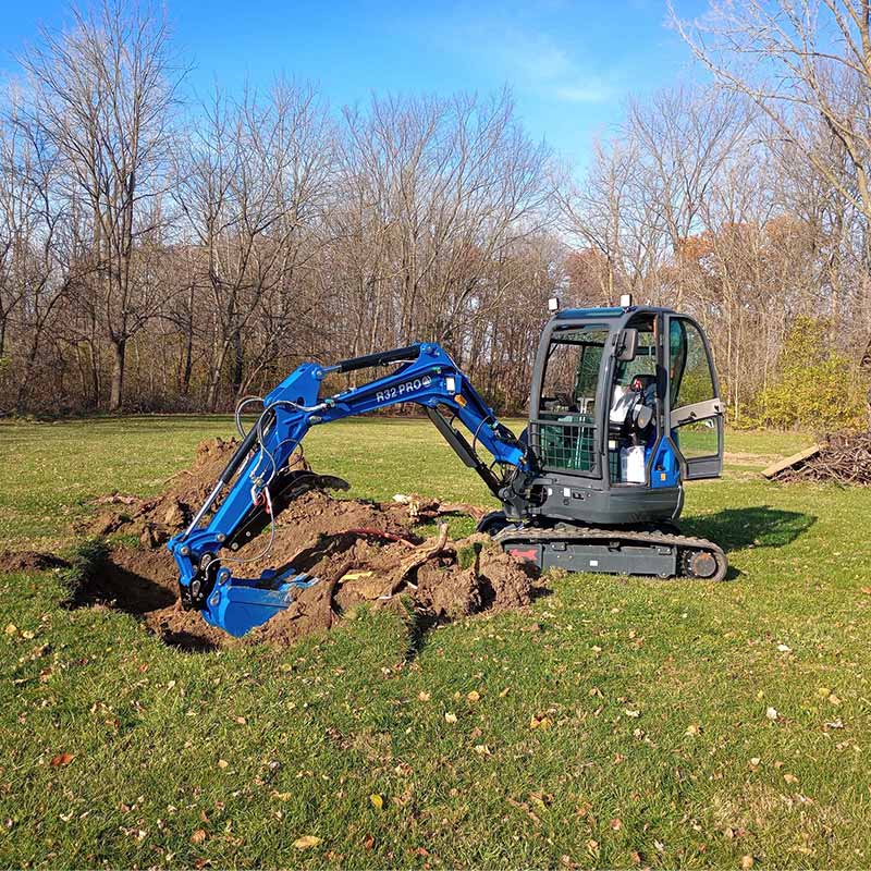La precisione sul campo è garantita dall'ampio raggio d'azione dell'R32 PRO, che consente agli operatori di affrontare con facilità trincee profonde e lavori con carichi elevati.La macchina offre una profondità di scavo massima di 2293 mm (90,3 pollici) e un raggio di scavo massimo di 4255 mm (167,5 pollici)